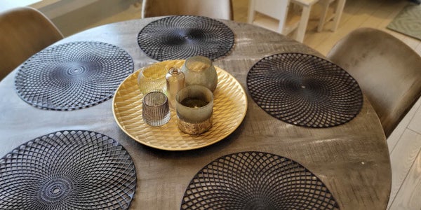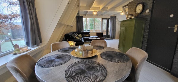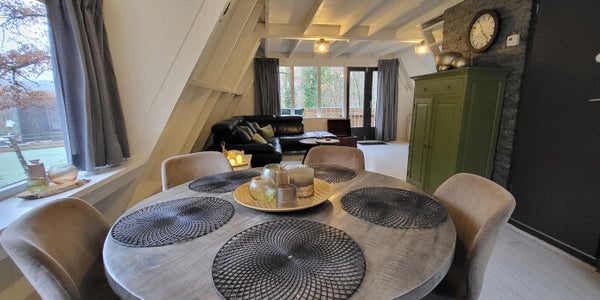 Aan de ronde tafel kan je lekker zitten en kijk je zo de keuken en de woonkamer in. Zo heb je verbinding met iedereen in het huis, lekker gezellig! Met onderstaande diashow krijg je een goed beeld van het interieur!